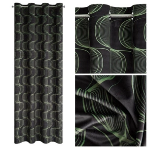 Velvet Pola Curtain 140 x 250 Sash Black+Green