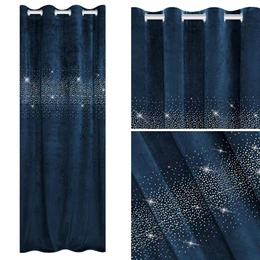Curtain 140 x 250 Decorative Velour Shiny Navy Blue