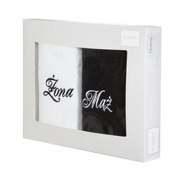 Husband Wife Towel Set 2pcs. 50 x 90 White+Black