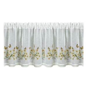 Firana 60 x 150 Dekoracyjna Gotowa Flora Biały+Żół