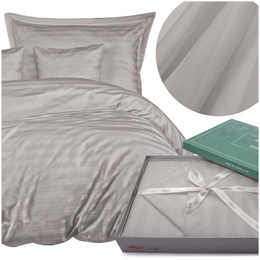 Pościel 160 x 200 7cz Satyna Bambus STRIPE GREY