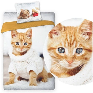 Pościel Młodzieżowa Bawełniana Best Friends Cat Biało-Żółta 311 160x200NP 2 części