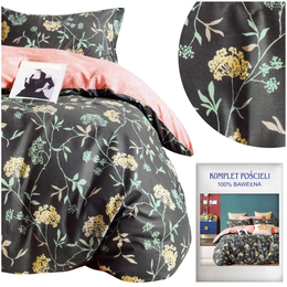 Pościel Satyna Bawełniana w Kwiaty Dwustronna A683 200x220NP 3 części