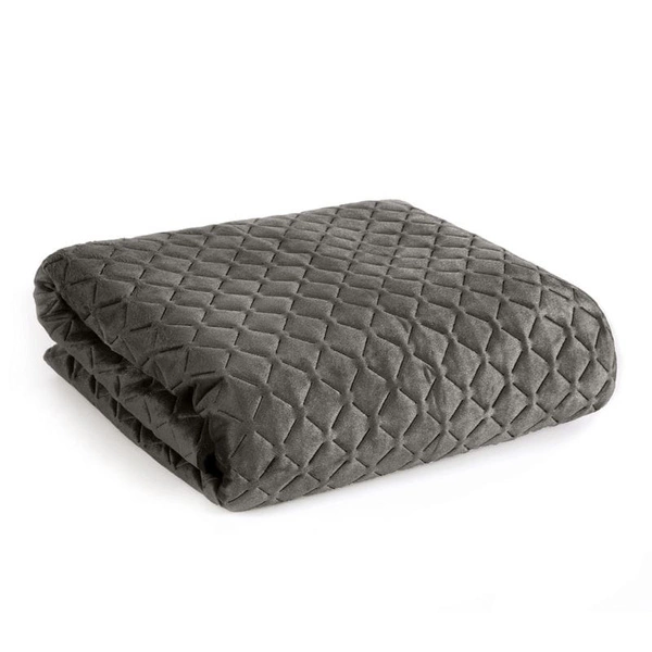 Dimon bedspread is made of soft velour-like material, while the other side is made of cotton-like material. The bedspread is quilted throughout with a pattern resembling tiny rhombuses.