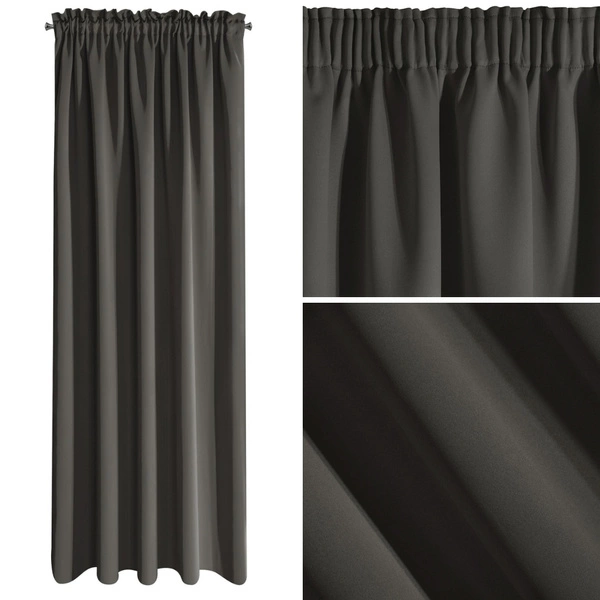 - Beautiful uniform curtain Logan is a product for your home. Aesthetic decoration in graphite color hung with tape.