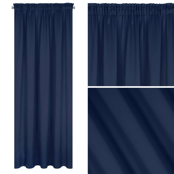 - Beautiful uniform curtain Logan is a product for your home. Aesthetic decoration in navy blue color hung with tape.