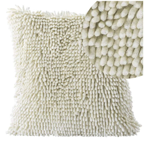 - Shaggy pillowcase in a fashionable cream color with decorative tassels.