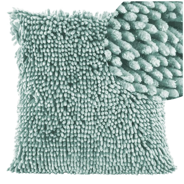 - Shaggy pillowcase in fashionable mint color with decorative tassels.