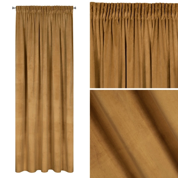 Elegant window dressing accessory created from velvetyto the touch fabric. An additional advantage is its aesthetic and precise finish, as well as an exquisite matching ribbon. The original design consists of a subtle honey-colored background and classic piping.