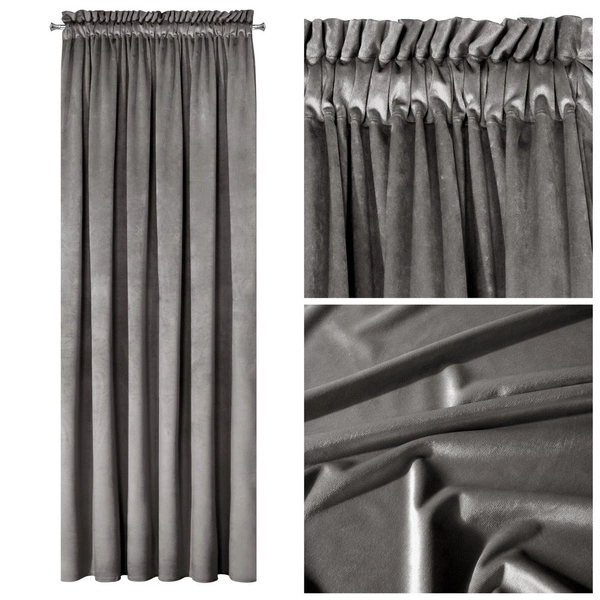 The smooth Cardini curtain was sewn from matte velvet - a delicate fabric that softly flows from the curtain rod. It will delight especially lovers of classical interior design, as the product, simple in its form, delicately emphasizes the style of the interior, but it is not distinguished by rich colors and design. With a weight of 215 g/m2, the curtain gives the effect of visually warming the interior and perfectly insulates sunlight, providing high comfort and a sense of privacy. The sewn-in tape allows you to suspend it with either jabots or hooks.