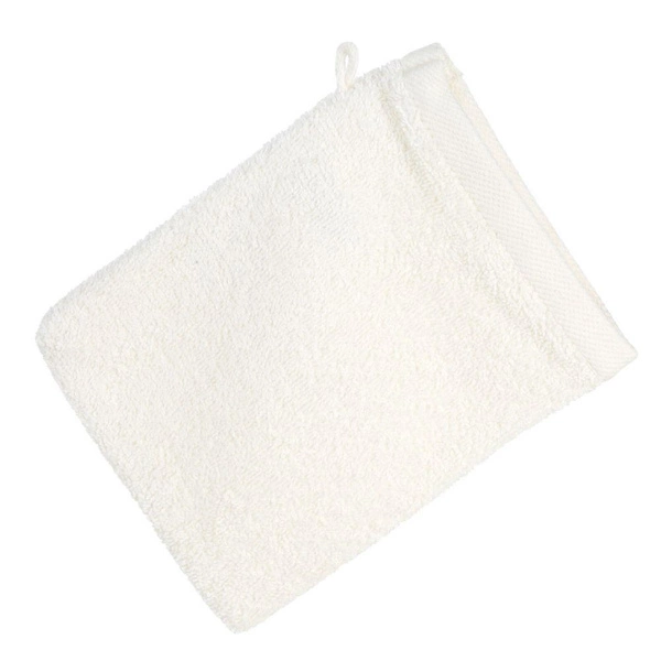 - A single-color glove made of soft cotton terry weave fabric.