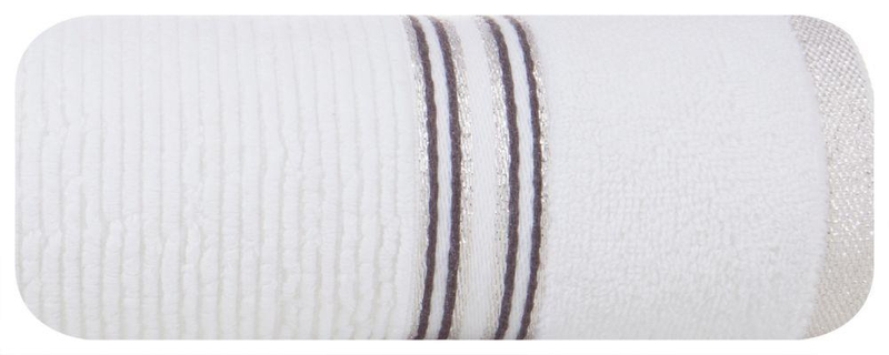 - Fluffy and exceptionally absorbent terry cotton towel with a fine ribbed texture. The border is darker in color with a shiny thread.
