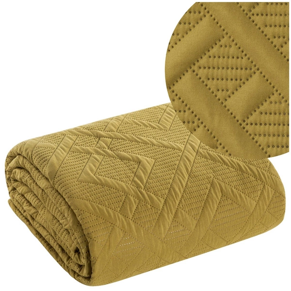 The Alara2 bedspread is decorated with quilting in geometric patterns. The vivid and elegant mustard color will suit most modern interiors. It is characterized by velvetysmoothness. Quilted using the hot-press method to enjoy its durability for longer.