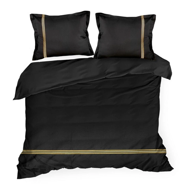 Are you looking for elegant bedding that will give you a comfortable rest? Premium set showing embroidered pattern of stripes on a black background will introduce a touch of classics into the bedroom. It will especially delight those who prefer the style romantic and retro. Cottonsatin, from which the set was made, is very soft and delicate to the touch. It ensures adequate air circulation, providing gentle coolness in summer and optimal warmth in winter. As a result, it can be used all year round.