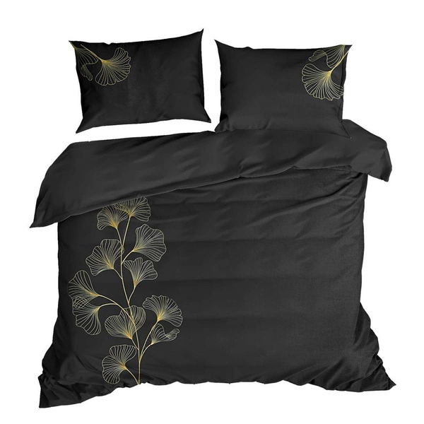 Are you looking for elegant bedding that will give you a comfortable rest? Premium set showing an embroidered pattern of ginkgo leaves on a black background will bring a touch of classic to the bedroom. It will especially delight those who prefer romantic and retro style. Cotton satin, from which the set was made, is very soft and delicate to the touch. It provides adequate air circulation, providing gentle coolness in summer and optimal warmth in winter. As a result, it can be used all year round.