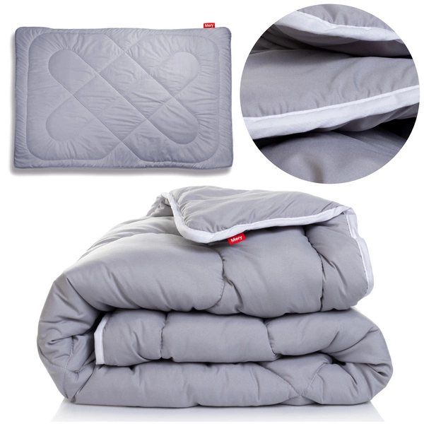 The quilt lined with 600 g/m2 microfiber fabric is a highly breathable fabric. It is not slippery for it is nice to the touch. Filled with silicone fiber, so it retains its fluffiness for a very long time. Light and airy having anti-allergic properties perfect for those who do not tolerate natural down. It keeps you warm and air circulation. It was finished with piping and packed in a case, making it suitable for a gift. Ideal for winter.
