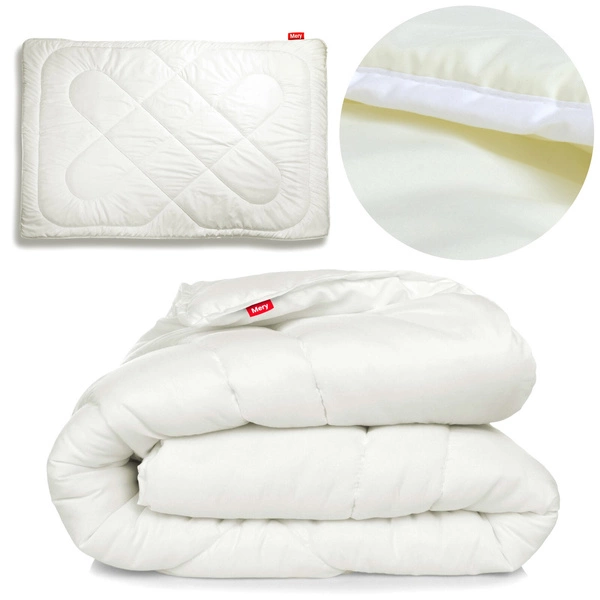 The duvet covered with 600 g/m2 microfiber fabric is a highly breathable material. It is not slippery but feels pleasant to the touch. Filled with silicone fiber, it retains its fluffiness for a long time. Light and airy, it has anti-allergic properties, making it perfect for those who cannot tolerate natural down. It ensures warmth and air circulation. It is finished with piping and packed in a suitcase, making it suitable for a gift. Ideal for winter.