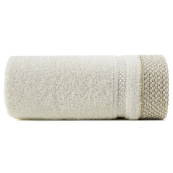 Cotton towel from the Kinga collection is distinguished by its universal cream color and jacquard borders with a motif of fine check. The fabric is soft and pleasant to the touch, does not irritate delicate skin. High grammage provides good water absorption, which guarantees quick drying of the body after bathing. The product will perfectly blend into classic bathroom arrangements, creating a stylish whole.