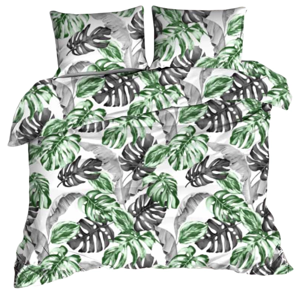 Bedding set from ADAM Company made of100% cotton bark. Bedding made of great material with vivid colors and rich design. On a white background are depicted green and gray leaves, which enliven the article. The material is extremely pleasant to sleep on. It does not require ironing and is very durable.