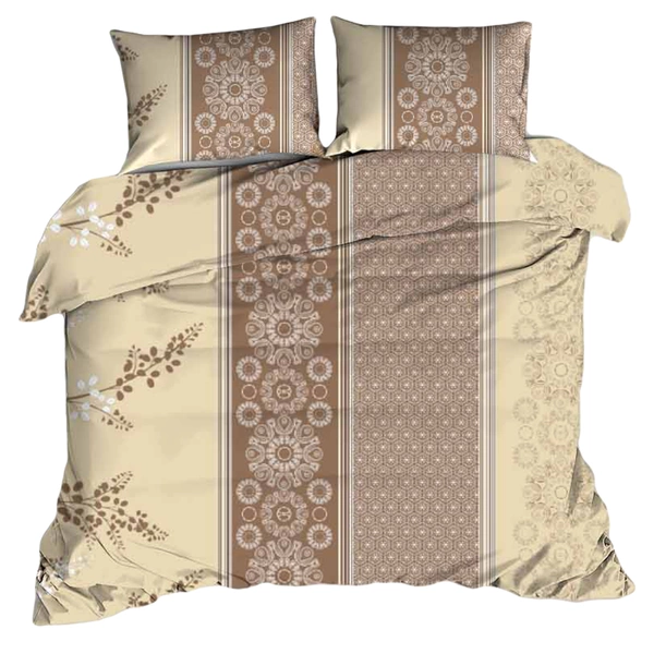 Bedding set from ADAM Company made of100% cotton bark. Bedding made of great material with vivid colors and rich design. On a brown and beige background are depicted leaves, rosette imitation patterns and geometric figures, which enliven the article. The material is extremely pleasant to sleep on. It does not require ironing and is very durable.