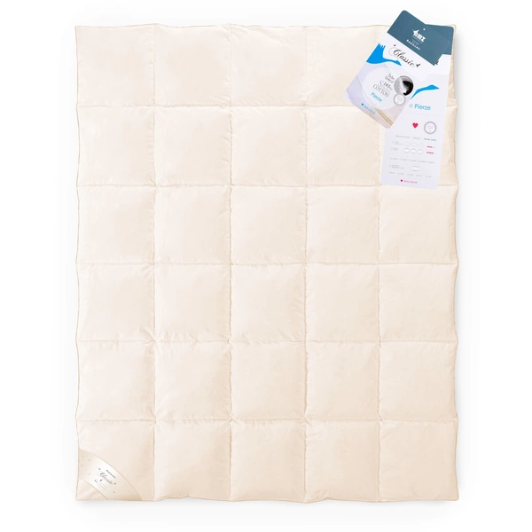 The Natural Classic quilt is a Polish product, sewn with attention to the smallest details. A natural product, built with quality raw materials that provide adequate air circulation and optimum humidity levels. Thanks to the filling of Polish goose feathers, which is not ground or crushed in any way, the comforter is dust-free, springy and retains its qualities for a long time.