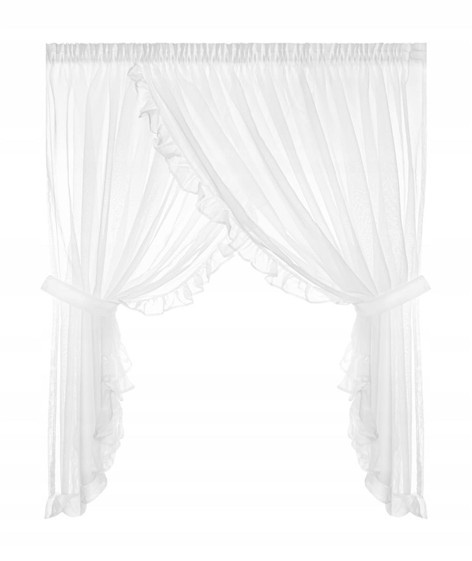 Bright curtain 400x250 is characterized by a smooth, single-color pattern. It was made of polyester fabric, which is matte and has a satin sheen. It is characterized by lightness and airiness, and is finished with a decorative frill.