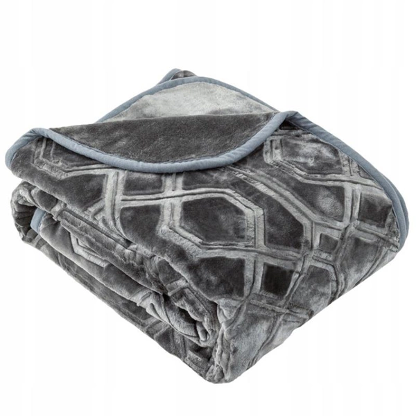 The acrylic blanket on the right side has a geometric embossed pattern, while the left side is completely plain. It is finished with a tape to prevent damage.