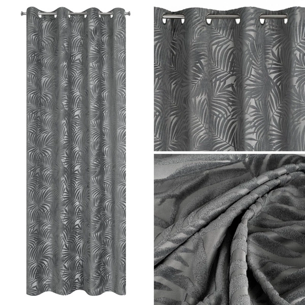 Livia decorative curtain is a refined decoration with embossed pattern of botanical leaves. With it you will feel closer to nature, and the room will become fresh and light. It will introduce a friendly atmosphere and encourage you to stay longer in the interior! The exotic motif brings to mind the hot days of summer, so the household members and their guests will feel as if they are on vacation .