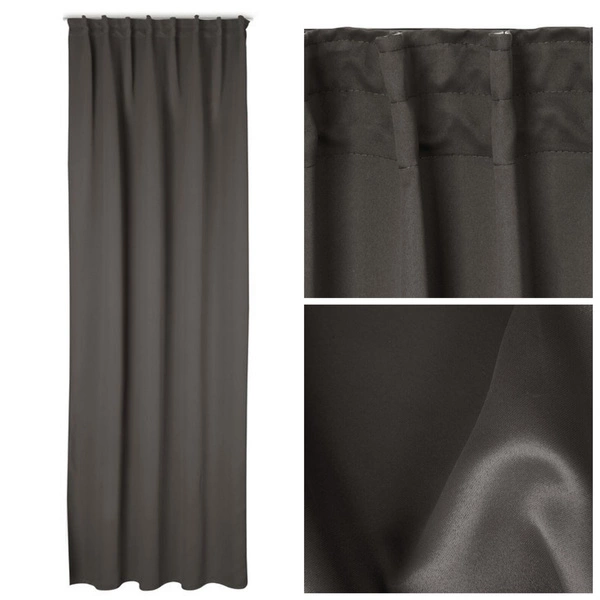 Milan curtain is made of soft blackout blackout fabric. Smooth and of uniform graphite color, it is elegant and pleasant to the touch. It is distinguished by a delicate satin sheen. In addition to providing visual qualities, the curtain at the same time perfectly shields from the sunlight coming in from outside. Thanks to the high shading of the fabric at 50-60%, it provides privacy and allows you to sleep longer in the morning. Therefore, it is ideal for heavily sunlit rooms.