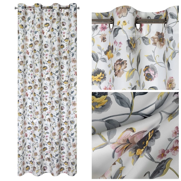 - ^^ Floral pattern - will introduce nature motifs into the interior ^^ Practical grommets - you will quickly hang the curtain ^^ Functional - will partially darken the room