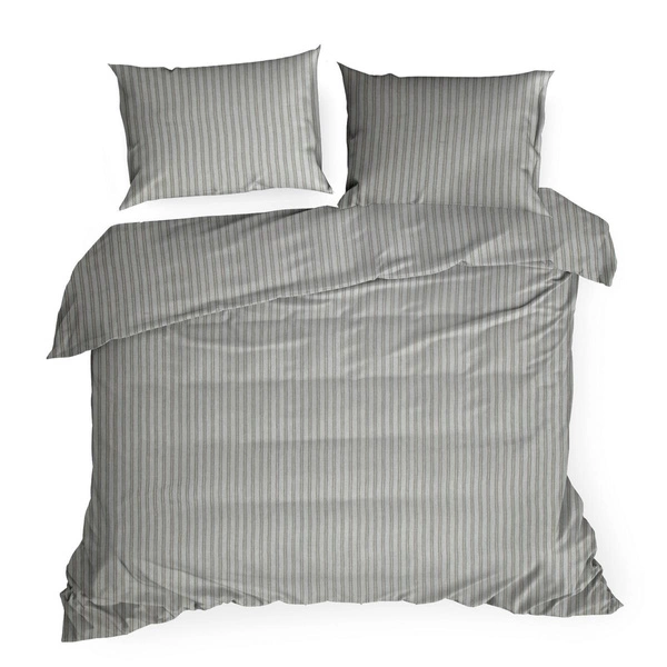Bedding set Etno is made of cotton fabric combined with polyester, which gives the product durability. The fabric is silky soft and very pleasant to the touch, as well as easy to iron and resistant to creases. All this provides great comfort for a night's rest. The bedding is characterized by the juxtaposition of always fashionable stripes interspersed with shiny lurex thread in a steel shade.