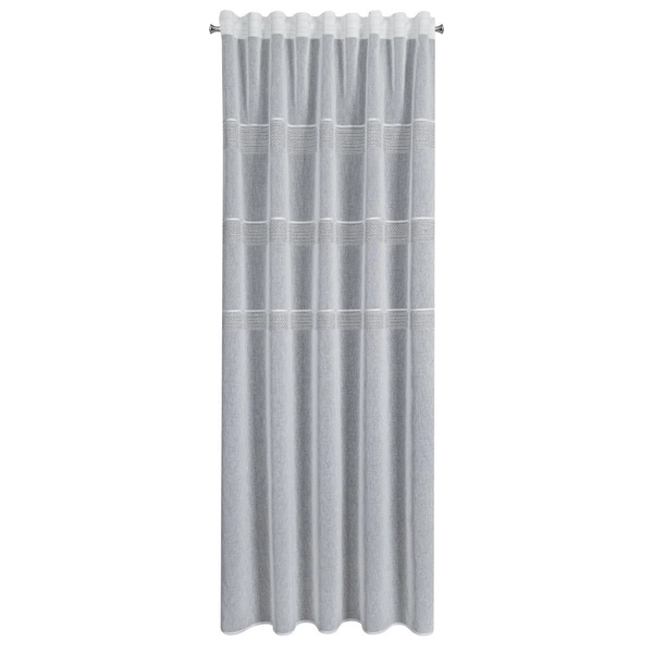 A distinctive feature of this curtain is the stripes decorated with a net-like structure, which add to its originality and lightness. This structure not only looks beautiful, but also gently transmits light, creating a pleasant atmosphere in the room.