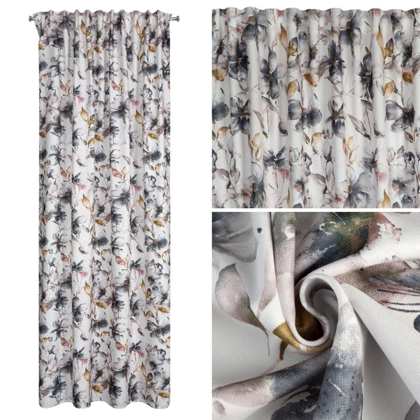 - Curtain on tape with hidden suspenders with floral print in eco style from Nika collection.