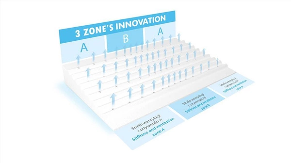 The pillow features 3-zone ventilation channels that ensure air circulation. The filling consists of high-quality MEMORY thermoplastic foam, which adapts to the shape of the body.