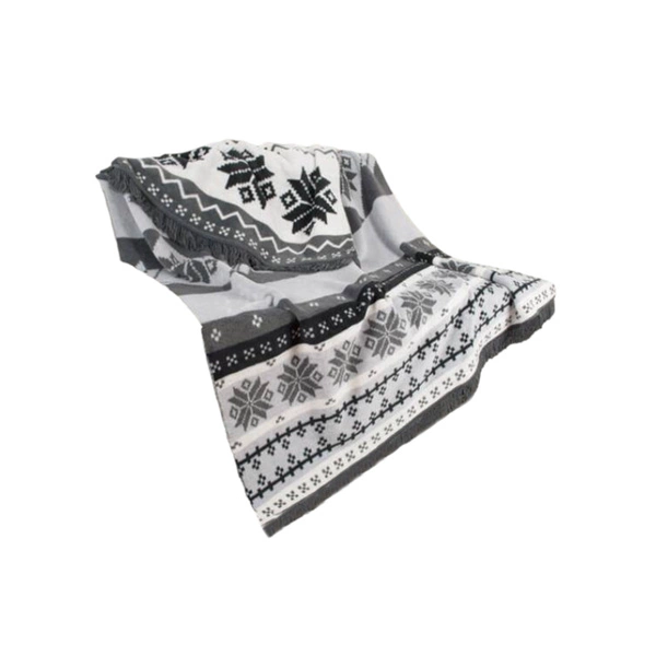 The product impresses with its design, as well as the trimming with fashionable tassels, which make it beautifully presented. Diverse colors will enliven the interior decor, introducing style and charm into it.In addition, the blanket can also be used as a bedspreadfor a sofa or armchair. The presented model of the blanket delights with colors in shades of white, black and gray. Norwegian patterns can be seen on it.