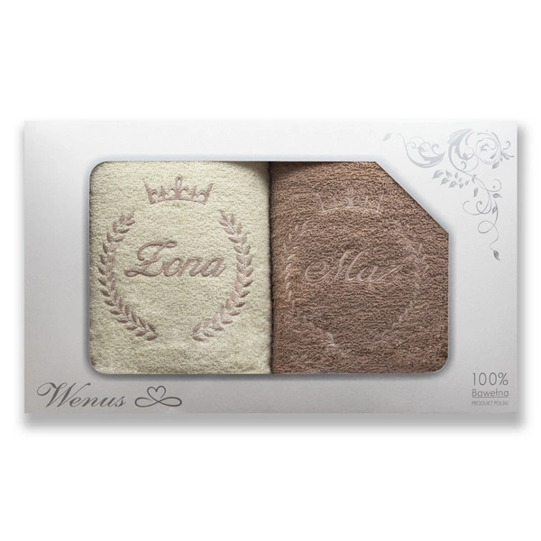 With their color scheme they will fit into classic as well as modernly decorated bathrooms, and the inscription "Wife" and "Husband" over which there is a crown will additionally bring a smile to your face and add variety to the decor. Such towels are sure to attract the attention of guests with their visual qualities.