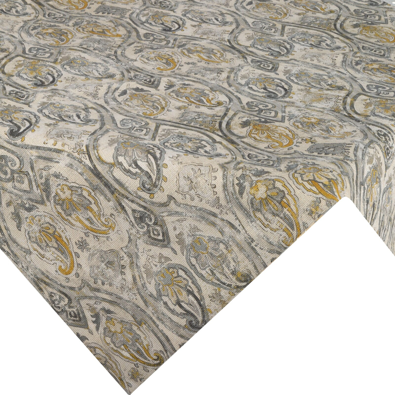 The ornate design adds sophistication to any space, creating a warm and cozy atmosphere. With a modern yet timeless design, the tablecloth blends seamlessly with a variety of interior styles. It is the perfect decorative accent that easily combines functionality with aesthetics.