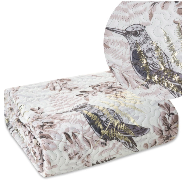 Its greatest asset is the pattern of flowers and birds that forms its surface. The motif is very delicate and romantic, which gives the bedspread a unique character. The whole in subtle shades with gold inserts looks very fresh and natural.