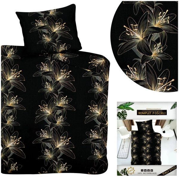 Excellent color rendering and modern designs are characteristic features of Dalwin bedding. Lovers of unconventional motifs will appreciate their creativity, and fans of stylish colors will be entranced. The set, thanks to its simplicity and elegance, will meet the expectations of every customer. The presented model shows Asian lilies on a dark background.