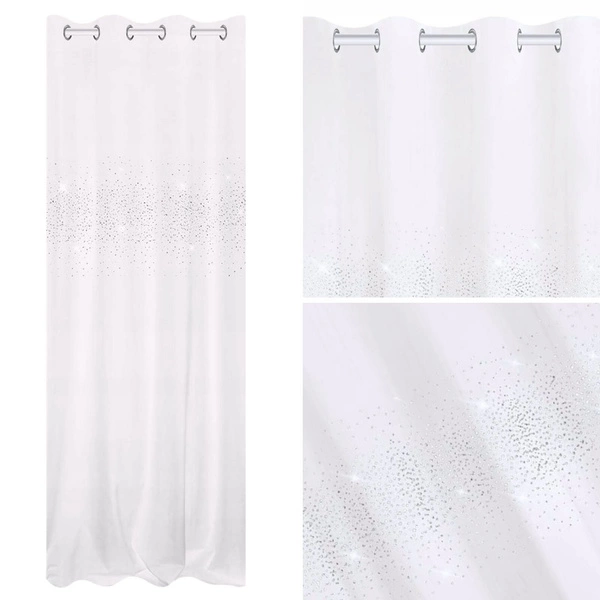 It has a standard size of 140x250 cm and an elegant fixing in the form of silver circles with a diameter of 4 cm, which do not cause any problems in putting on the curtain rod.