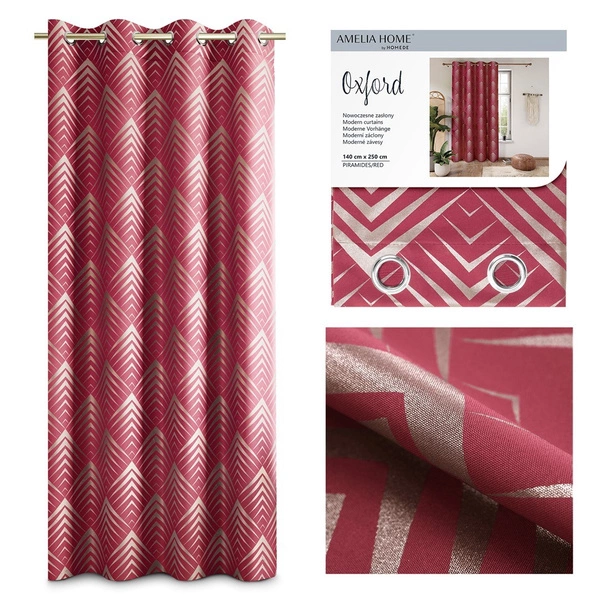 Richly decorated with a golden, shiny geometric pattern, the curtain will become a distinctive and elegant decorative element of any room. The pattern will add modernity and sophisticated style to the space, while creating a cozy atmosphere.