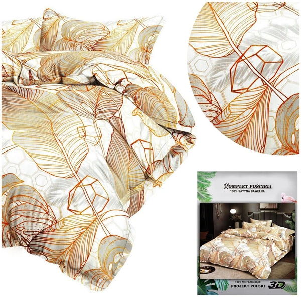 The print that is on the material was applied with 3D technology. Excellent color rendering and modern designs are the hallmarks of this collection. On the set there is a print depicting golden leaves.