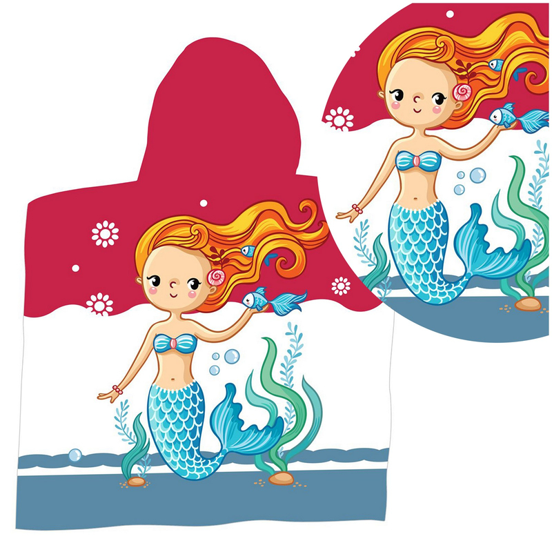 The bath towel is made of pleasant to the touch microfiber, which is friendly to the skin and does not cause irritation. Due to its properties, it dries very quickly and perfectly absorbs water, quickly drying the body after bathing. An additional advantage is the sewn hood, which will protect your child from the wind, for example, while relaxing on the beach. The colorful motif, depicting a smiling mermaid, will make the toddler eager to dress in the poncho. This way he won't waste time wiping, and parents are reassured, knowing that the child won't get cold. The towel is perfect for the beach, pool or for everyday use.