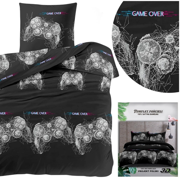 The print that is on the material was applied with 3D technology. Excellent color rendering and modern designs are the hallmarks of this collection. The set features a print depicting console game pads and the inscription "game over". an ideal proposition for a gamer!