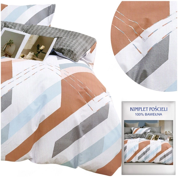 Cotton satin bedding is a high-quality fabric with a satin weave ofcotton fibers, providing exceptional softness. This type of fabric is distinguished by a delicate sheen and is velvety to the touch. The high structure of the fibers allows free air circulation, so that, in the winter it gives us warmth and in the summer it cools. The natural composition of ensures that our skin will be able to breathe freely under it. An additional advantage of the bedding is its ease of use as it is not slippery, it adheres very well to the quilt. The set shows colorful geometric patterns.