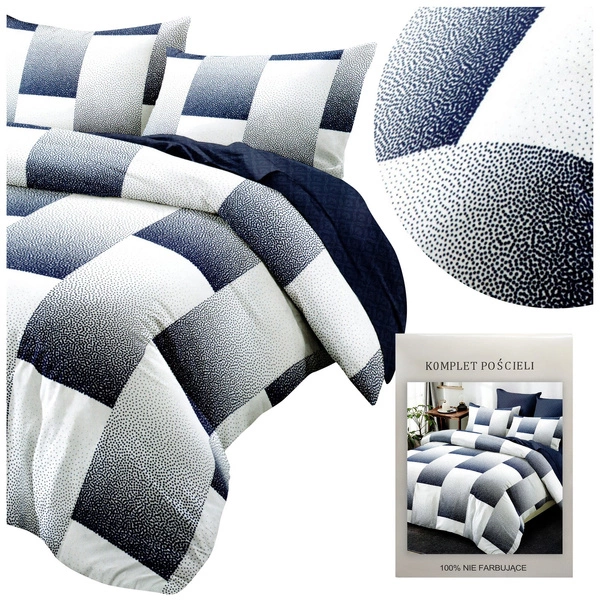 The bedding is produced with the latest 3D technology with high-quality microfiber, so it is thick and soft to the touch, which makes it pleasantly wrap the body and warm during the cold nights. The product has extremely vivid and saturated colors that will delight the most demanding customer. It is distinguished by fashionable and elegant design, which attracts the eye and diversifies the bedroom interior. The presented set in the shade of white and navy blue presents geometric pattern. It is fastened with a zipper, which greatly facilitates its replacement.
