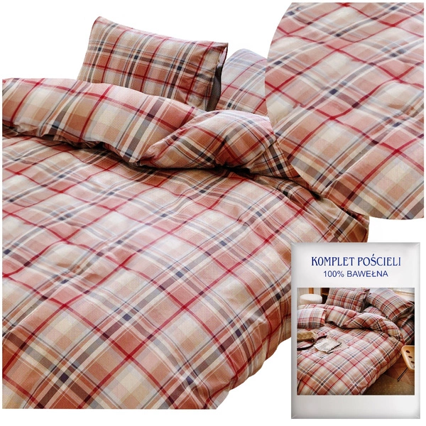 Bedding made of cotton satin is a high-quality material with a satin weave from cotton fibers, providing exceptional softness. This type of fabric is characterized by a delicate shine and has a velvety touch. The high structure of the fibers allows for free air circulation, keeping us warm in winter and cool in summer. The natural composition ensures that our skin can breathe freely underneath. An additional advantage of the bedding is its ease of use as it is not slippery and fits very well to the duvet. The set in shades of pink and red features a checkered pattern.