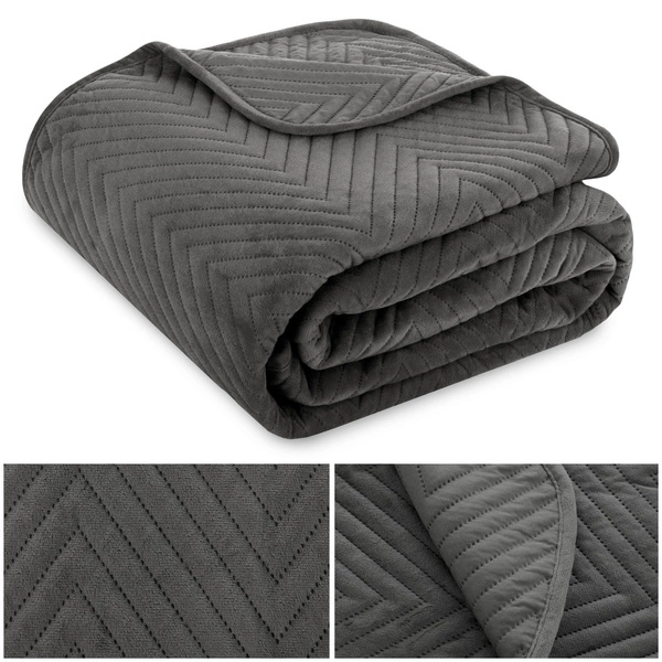The velvet side of the bedspread is exceptionally soft and pleasant to the touch, while the other layer made of durable fabric ensures sturdiness and resistance to wear. The quilting ensures that the filling lays evenly and does not shift during use. The precisely sewn piping strengthens the edges and emphasizes the elegant appearance.