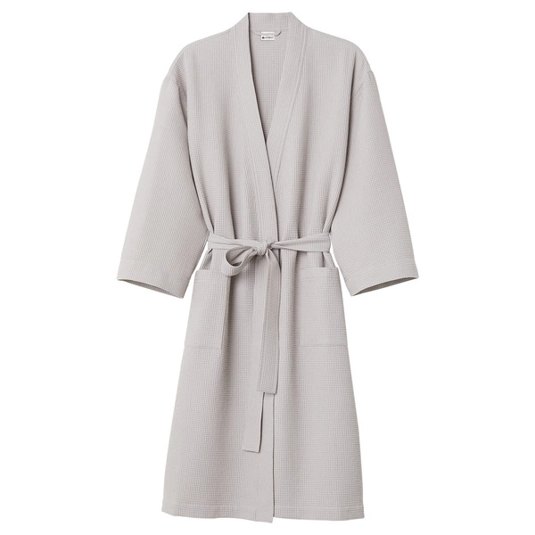 This 100% cotton bathrobe is soft, pleasant to the touch, and allows the skin to breathe freely. The waffle fabric is lightweight and breathable while also absorbing moisture well – a great alternative to classic terry cloth.