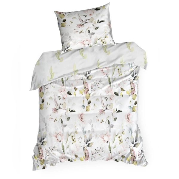 The fabric used for the bedding is a pleasant-to-touch blend of cotton (52%) and polyester (48%) with a weight of 125 g/m². Thanks to modern dyeing techniques, the colors remain vibrant even after many washes. The satin weave adds elegance and makes the bedding look beautiful on the bed.